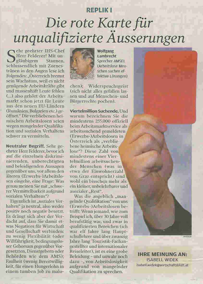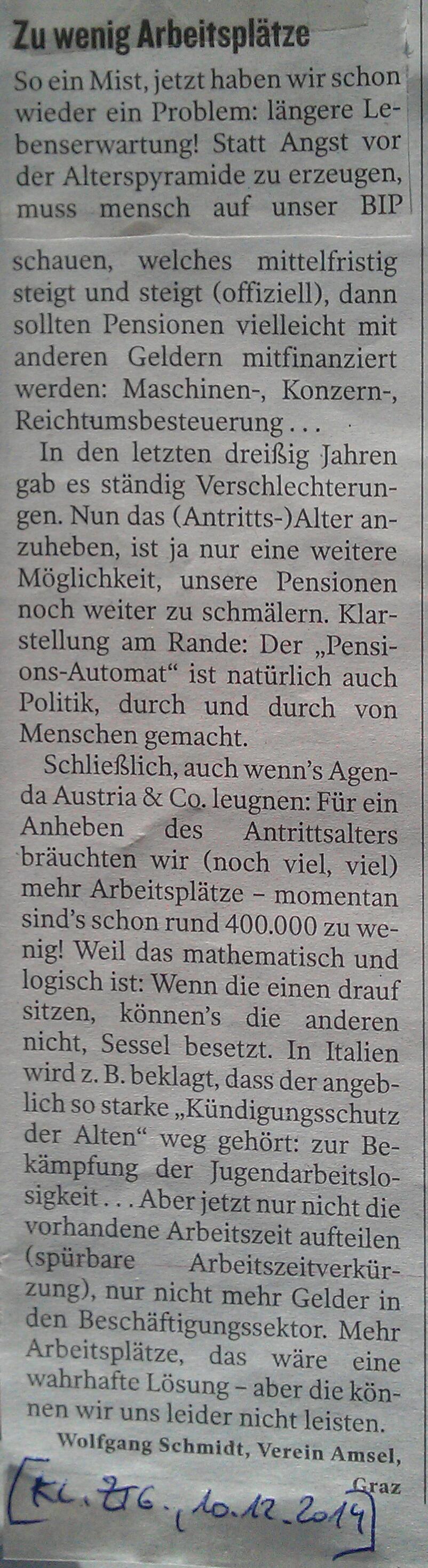(Kleine Zeitung 2. Aug. 2014) AMSEL-Leserbrief (Mitte Mai 2014) AMSEL-Leserbrief (5. April 2014) AMSEL-Leserbrief (9. März 2014) AMSEL-Leserbrief (6. Februar 2014)